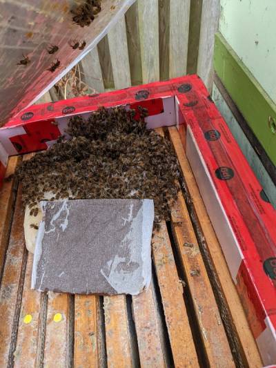 Using plastic thin grocery bag works well, too. Bees punch it after couple hours and empty in a day.