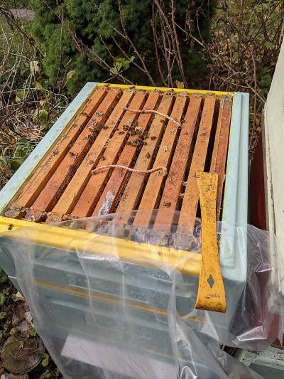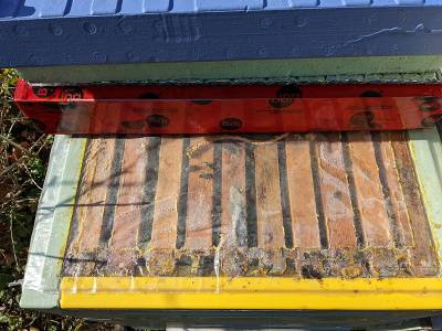 | 2022-Sep-25: | from 10lb of sugar +a cup of MegaBee + HoneyBeeHealthy | 1:1.30 | 0.4 gallon #1,#3,#4, #5 | RF | 10:00 am at 60F, | |